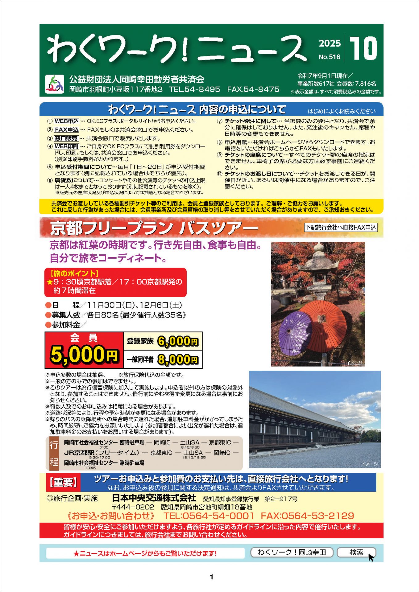 わくワーク!ニュース10月号 ニュース 2025.10.152025.09.28 WEB申込はこちらから わくワーク!ニュース10月号 FAX申込用紙 PDF FAX申込用紙 Word news2025-10ダウンロード